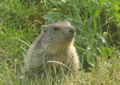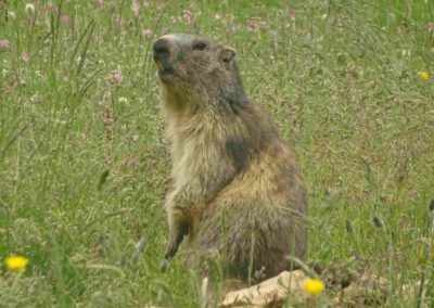 Another of the mountain dwellers which scurries away when walkers approach is the marmot (marmota in Spanish). A large ground squirrel, it is one of the star animals of the Pyrenees; one that people love to see and watch. They can be found right across the mountain chain. Walkers are usually alerted to their presence by the sound of the high-pitch whistle they use to communicate and warn each other of potential danger. Their burrows are usually found near mountain streams on the high pasturelands or grassy slopes. The best place to see them is at an altitude of roughly between 1,800 metres to 2,300 metres. A good way to do this is to settle down for lunch close to a stream, where burrows can seen. Keep quiet and more than likely the marmots will appear when they think you have gone.