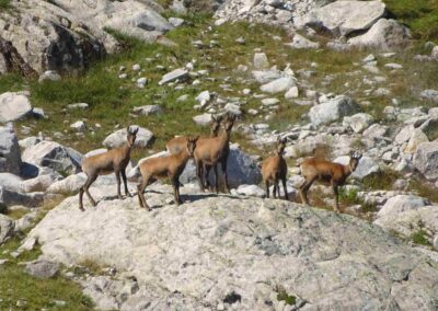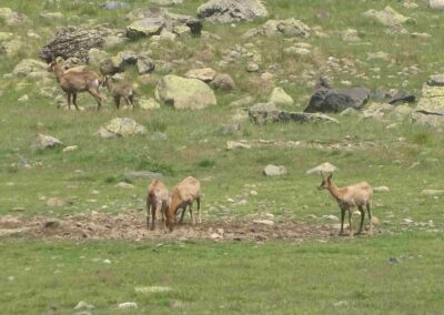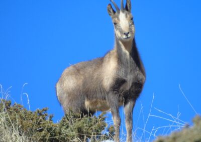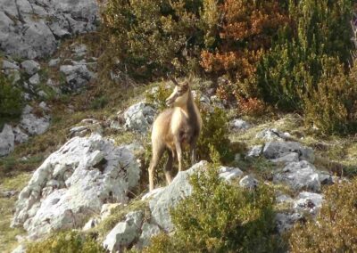 The high mountain areas near the passes and summits are home to the elusive chamois (rebeco in Spanish), a goat-antelope which only drops down to the pine forests during the winter. These graceful and incredibly agile animals are expert climbers and make themselves scarce very quickly when humans appear. The best way to see them is by keeping quiet, as with most wildlife. However, most walkers will only be aware of their presence when they hear falling stones in the distance, signalling that the chamois are in flight, scaling seemingly impossible rock faces.