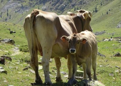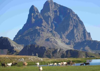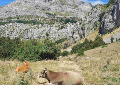 Regular visitors will know that it is difficult to walk in the Pyrenees in summer without seeing a cow. Amazingly these animals are comfortable at heights of up to around 2,400 metres – basically anywhere they can have a good feed and access to streams. The high pastures of the Pyrenees provide a welcome relief for them during the scorching months of July and August. They can sometimes be seen in some peculiar places, having a lie down in the grass on a steep mountain slope, or on a walkers’ trail. The transhumance is still very much alive here as the shepherds and their dogs drive the cattle up the livestock trails when the snows disappear and then back down again when the weather turns cold and the threat of snow returns.