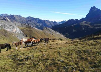 Semi-wild horses can also be found here. Similar to the cattle, they graze on the high-mountain pasture and are taken up and down as the weather dictates. Visitors are more likely to see these horses in the Catalan Pyrenees, particularly in the mountains around Puigcerdà; as well as border areas in neighbouring Aragón, such as Astún ski resort.