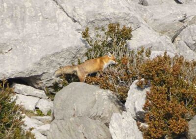 Even more elusive are the mountain foxes. I have only seen a couple in more than 20 years of walking in the Pyrenees. Fortunately, I had my camera in hand when one appeared at a height of around 1,800 metres on a cold, icy winter’s day. In the photo the fox seems slightly peeved that I manage to catch it on camera, and who can blame it.