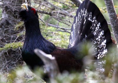 According to the RSPB, the Capercaillie is a huge woodland grouse – and the large black males are unmistakable.