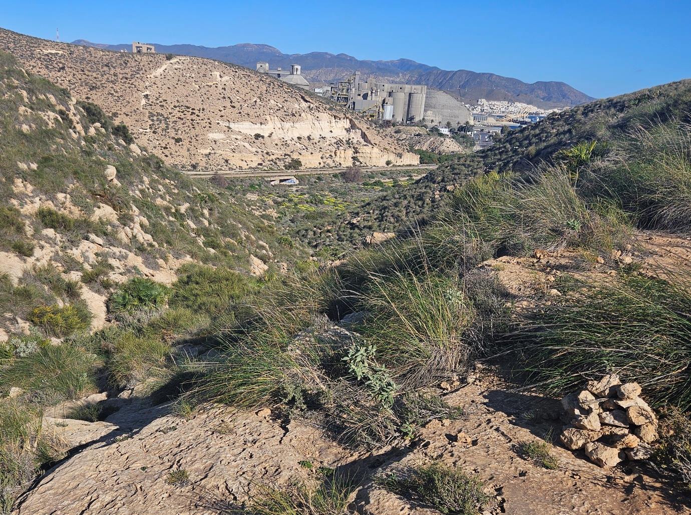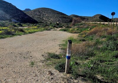 Arrive at a sign which points right for the Vía Verde Lucainena; we will return to this spot later to take the path down towards Agua Amarga.
