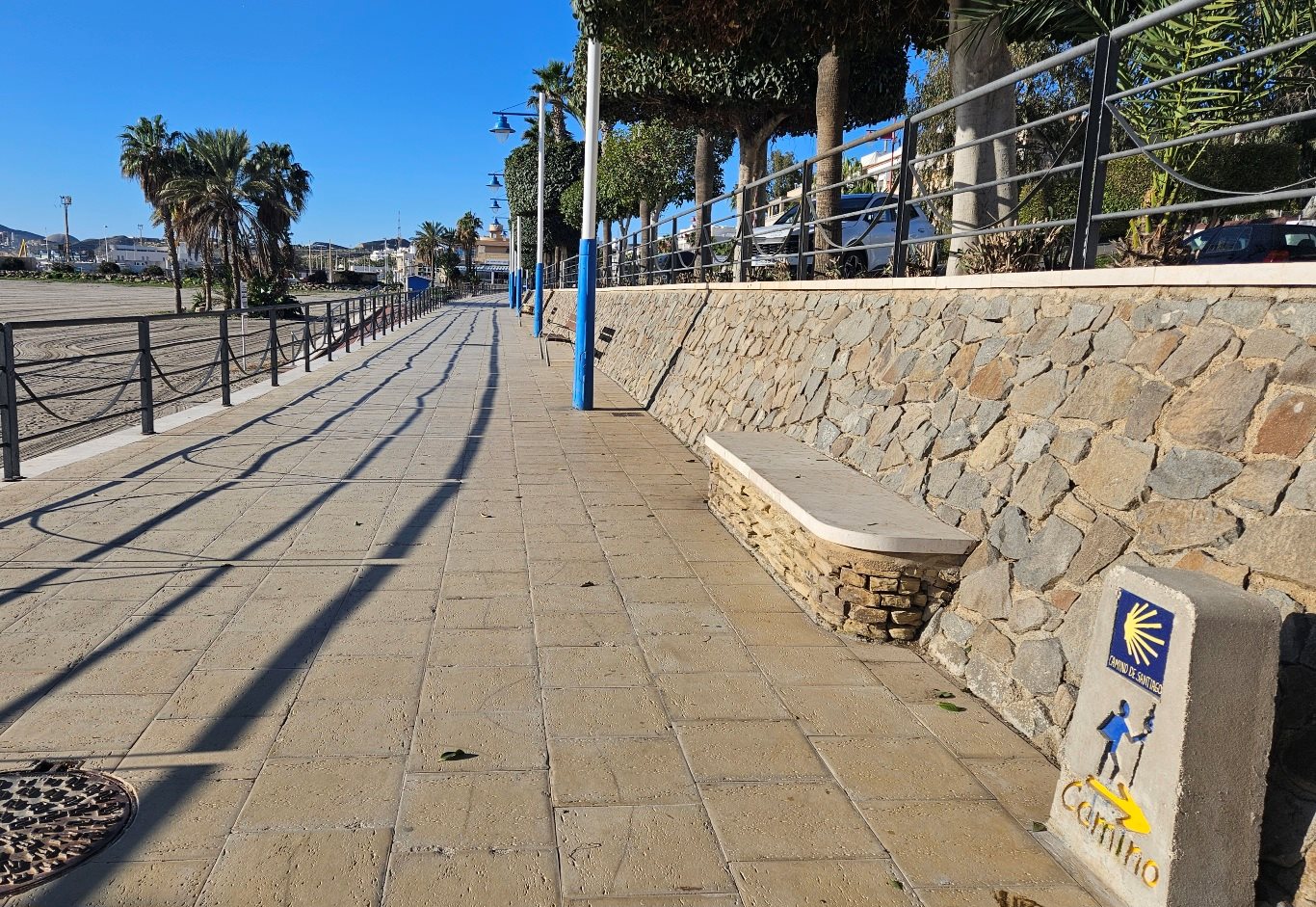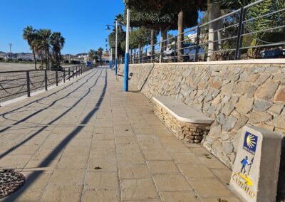 We leave Carboneras walking along the beach-front promenade, noticing the marker post for the ‘Camino de Santiago’ on the way.