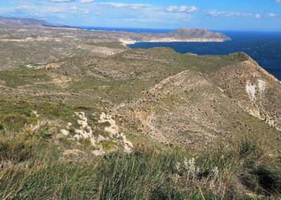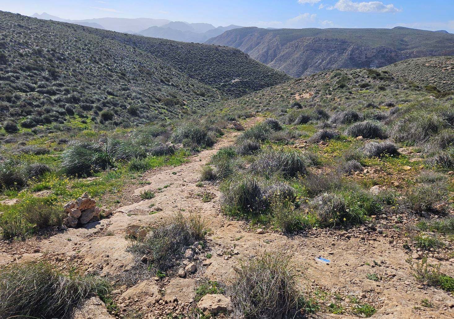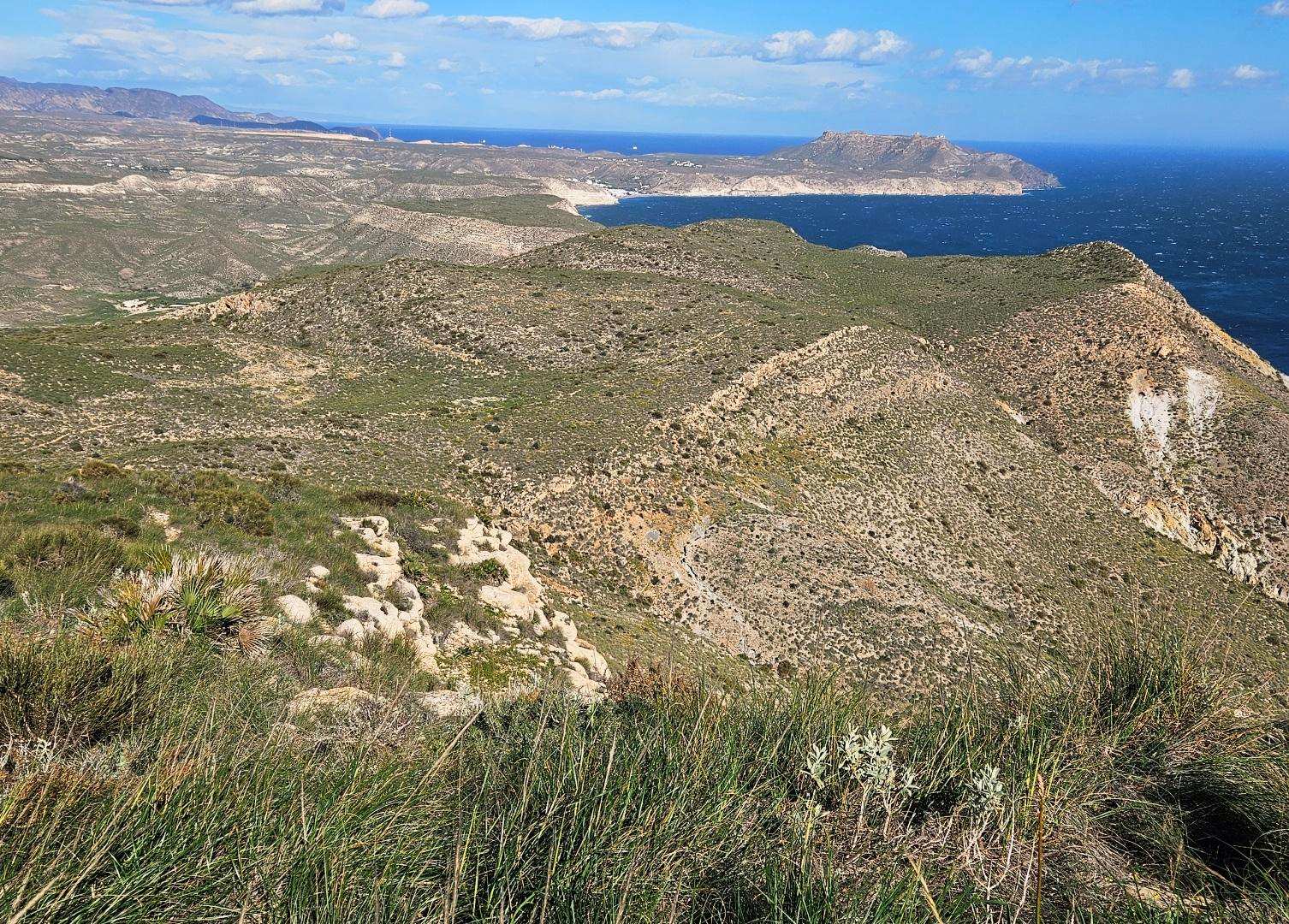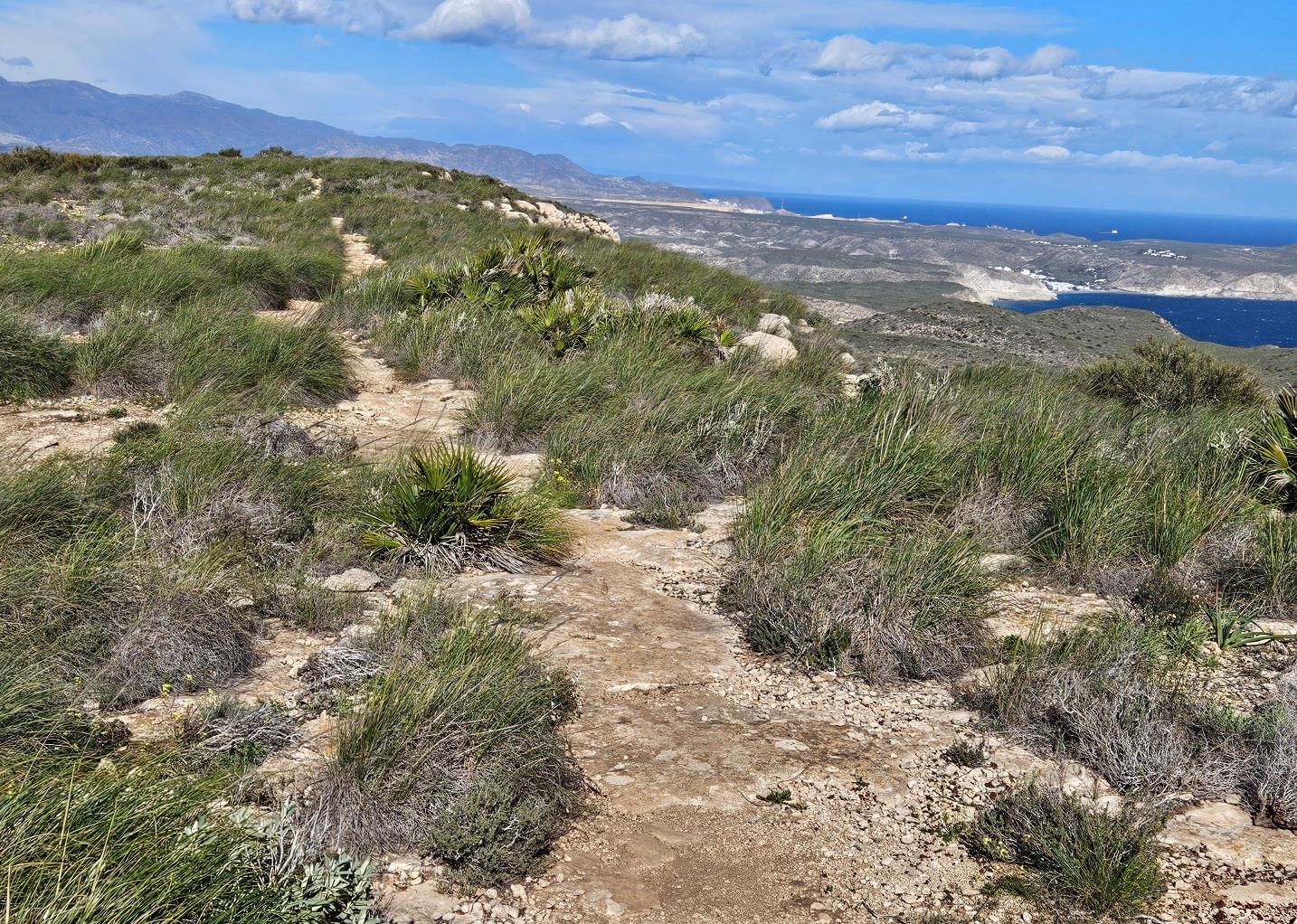 It is now a wide track which goes to Las Negras. En route you can admire the volcanic rock formations to the left.