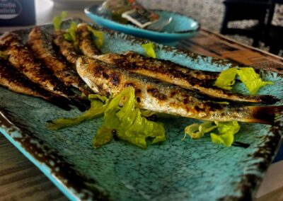 As the name suggests, sea views are guaranteed. I had a tasty tomato salad and a wonderful plate of sardines, which set me up for the final leg of the day’s walk.