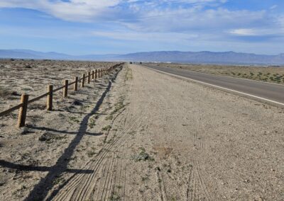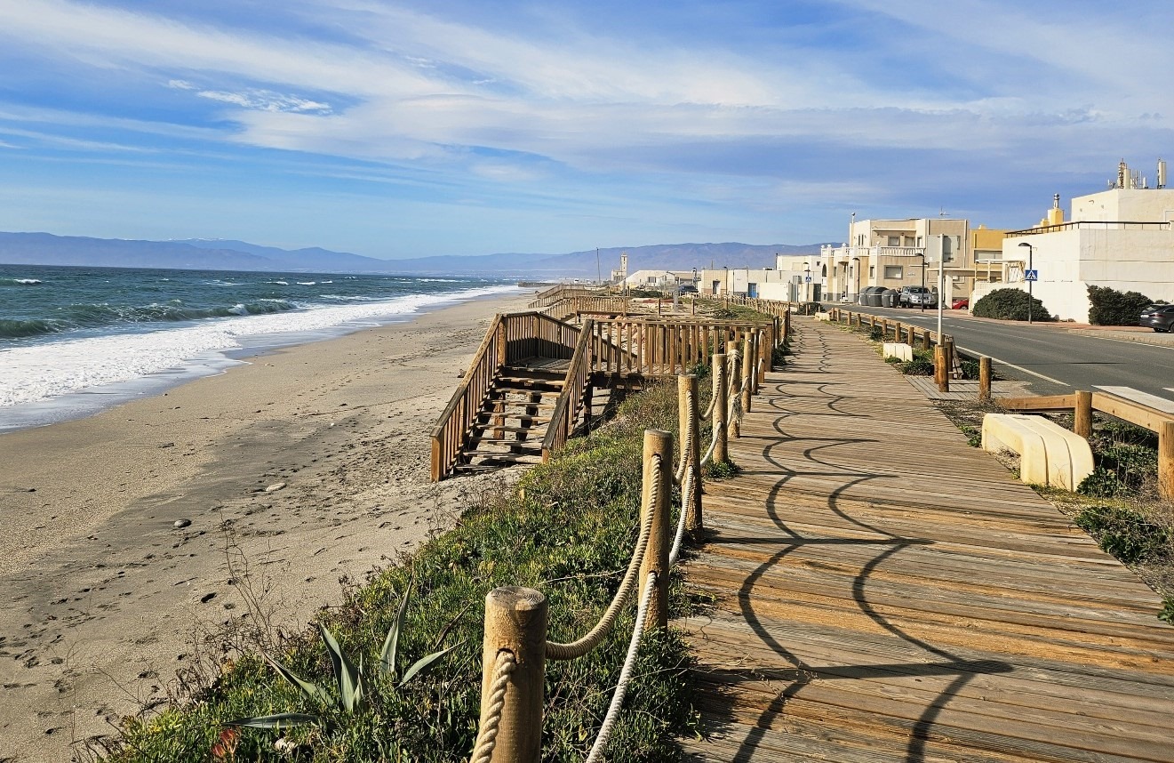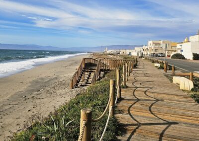 Mercifully, we come to a turning on the left which allows us to get off the main road for a short section which goes into the village of La Almadraba; first of all next to the beach and then along a boardwalk.