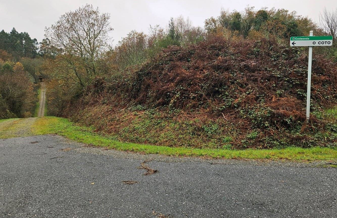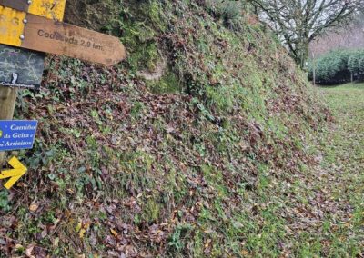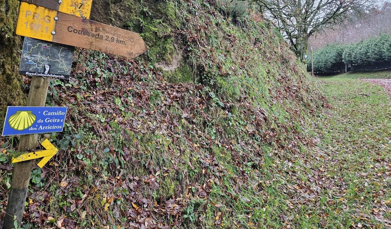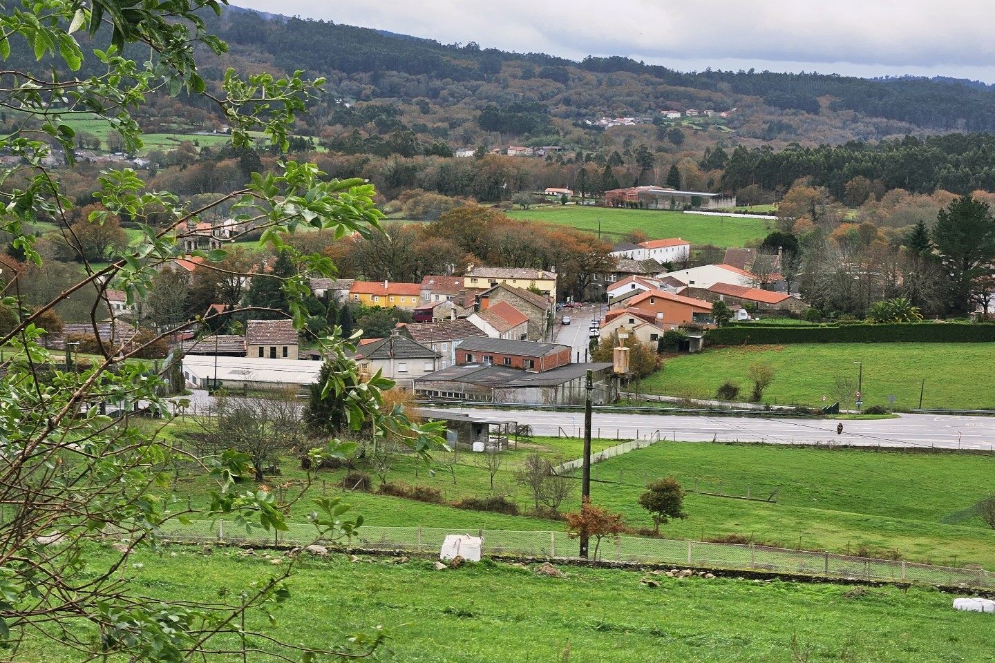 Keep following the arrows. The ‘camino’ gets onto a wide, surfaced track and starts the descent to Codeseda, with good views over the area before bearing left to enter the village.