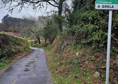 It’s easy walking and well-signed. From A Portela it’s 1.5km to reach the handsome chapel at A Grela; heading for O Coto at first and then seeing the sign at A Grela.