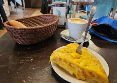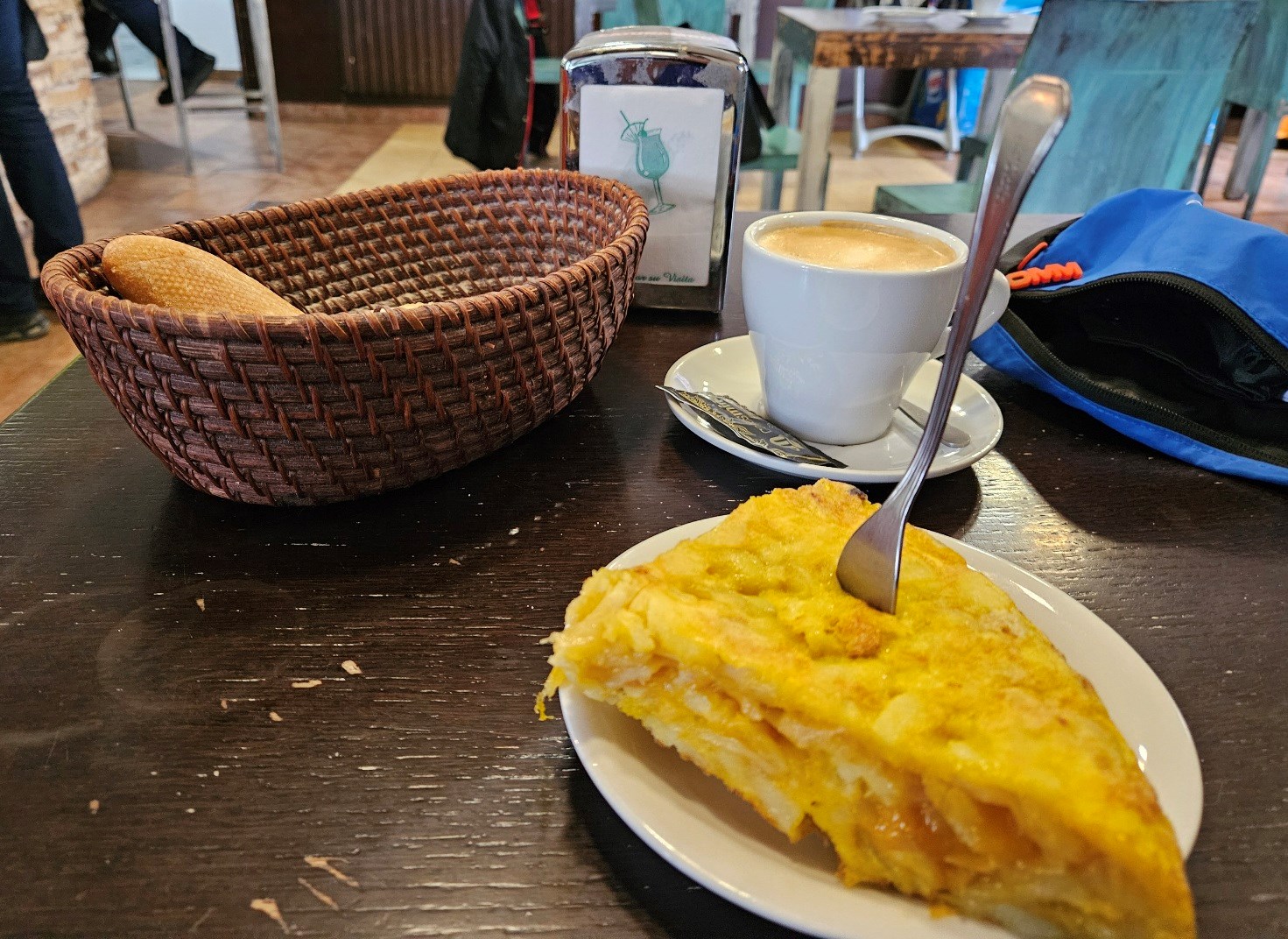 After passing through the village I reached a petrol station and bar on the main road, where I was very happy to get a ‘pincho’ of tortilla and a coffee; and also have a sit down in the warm interior.