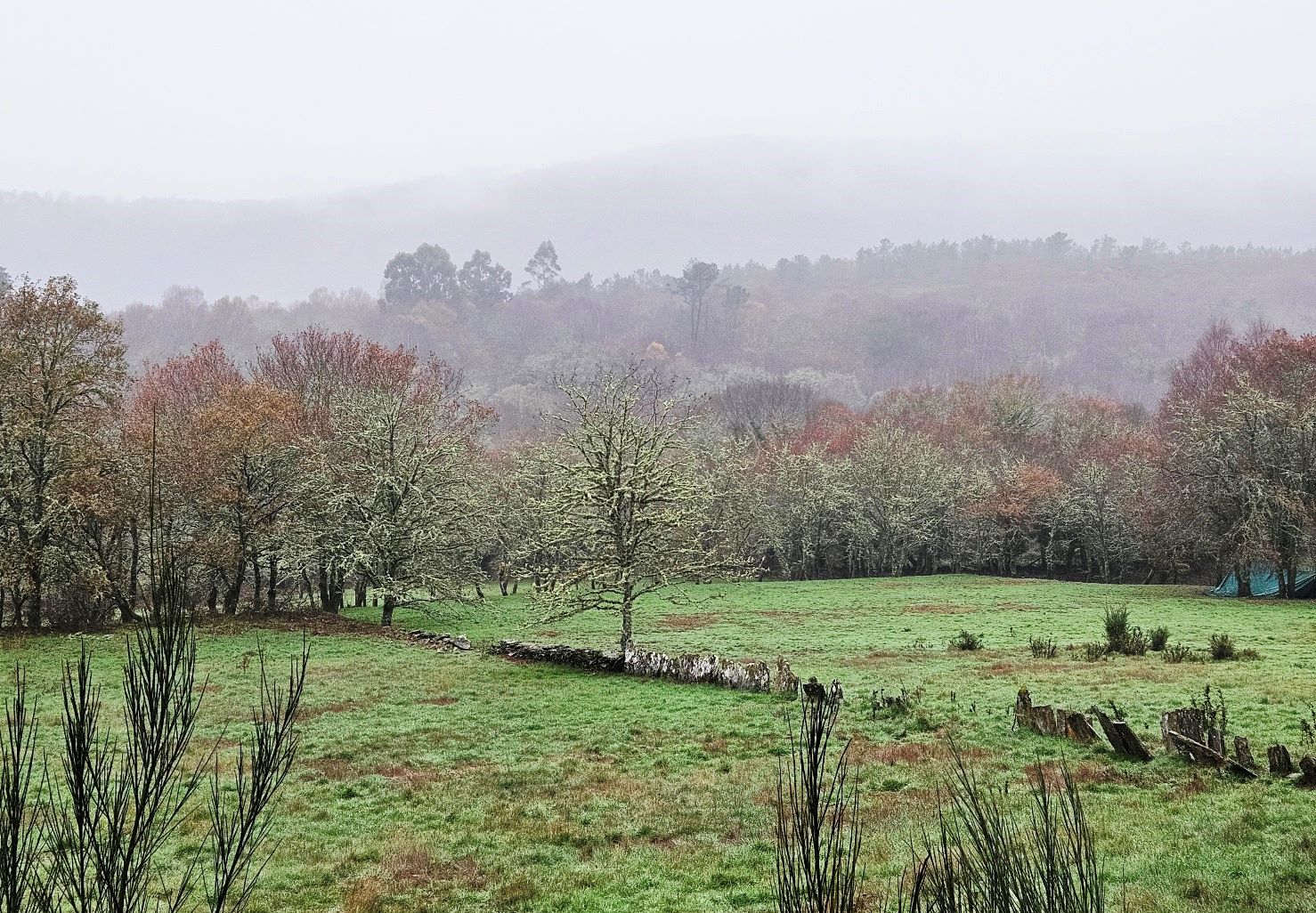 I had views of wonderful wizened trees covered with moss, and rain-soaked hillsides; passing through hamlets such as Liripio.