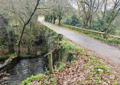 Here, I met up with the ‘camino’ for a while, passing through the business park and then parting company as I took a minor road, the PO-2205 to O Cachafeiro and on to the bridge over the River Lérez at A Ponte. Then across the road bridge into the small town of Forcarei.
