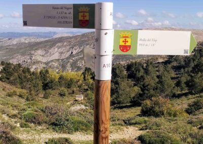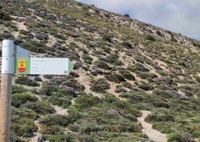After following the magnificent ridge, there is a short section of ascent to get to the summit cairn. Soon afterwards, see a signpost pointing for the Font del Noguer. Follow it.