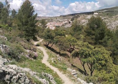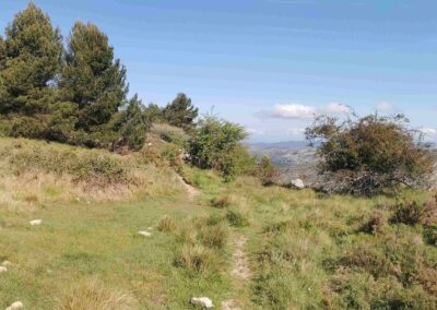 Take a line on the small clump of pines in the distance. The GR-330 passes to the left of the trees. After the pines, the path starts to descend.