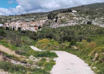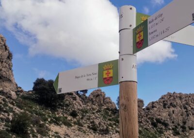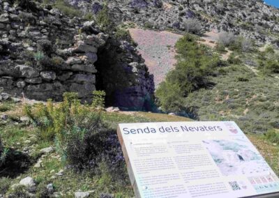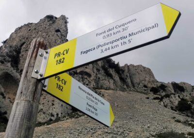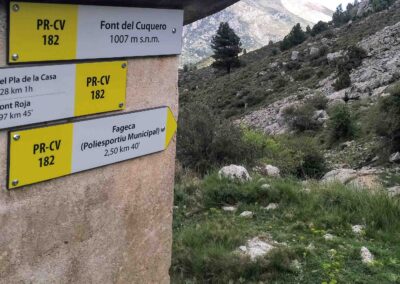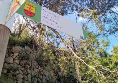 The Senda dels Nevaters (the ice men route) heads up the lane leading out of Plaza del Font in Famorca. It is 375m in distance up this wide track to reach a signpost, which points the walker off to the right onto a path.