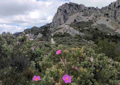 It emerges at a saddle, where there is a sign pointing right for Mallà del Llop; it’s only 377m to get to the top. We are now venturing onto the GR-330 trans-Alicante footpath, following white/red waymarks.