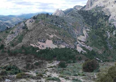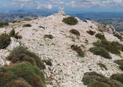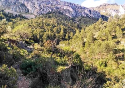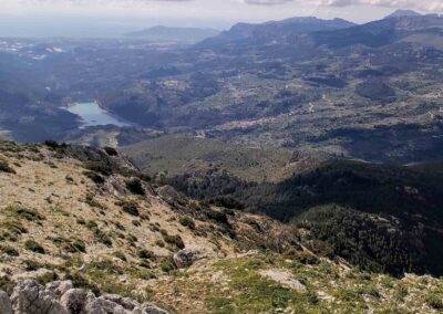 Fantastic views await on a clear day; across to the Sierra de Aitana with its listening devices. To the left of Aitana see the notch of Puig Campana, then down the Guadalest valley, and across to the twisted summit of the Bernia. To the north the coastline stretches up towards Valencia. It’s a truly splendid spot.