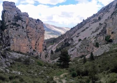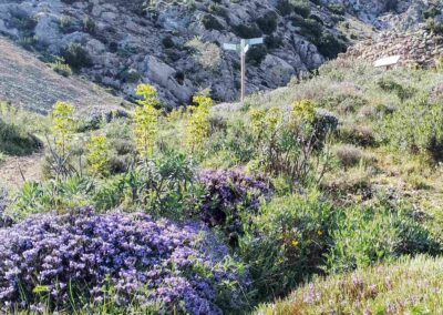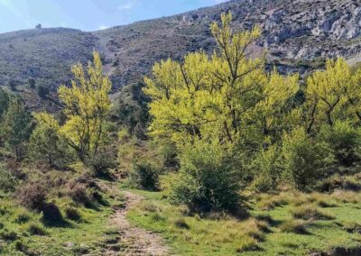 The PR-CV 182 emerges at the bottom of the ravine and bears left, passing a clump of trees and following the waymarks. Keep straight on at a junction, now walking next to a dry stone wall.