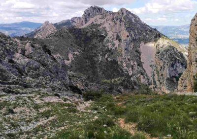 Looking over to the far side of the ravine below, see the path which we will use to descend back to Fageca. At the end of the ridge, beneath the summit, we bid farewell to the GR-330 at a crossroads.