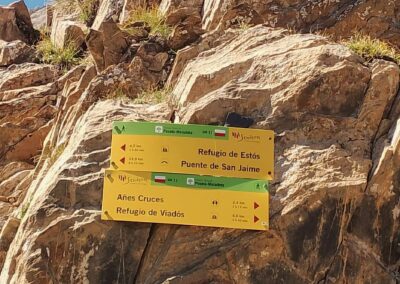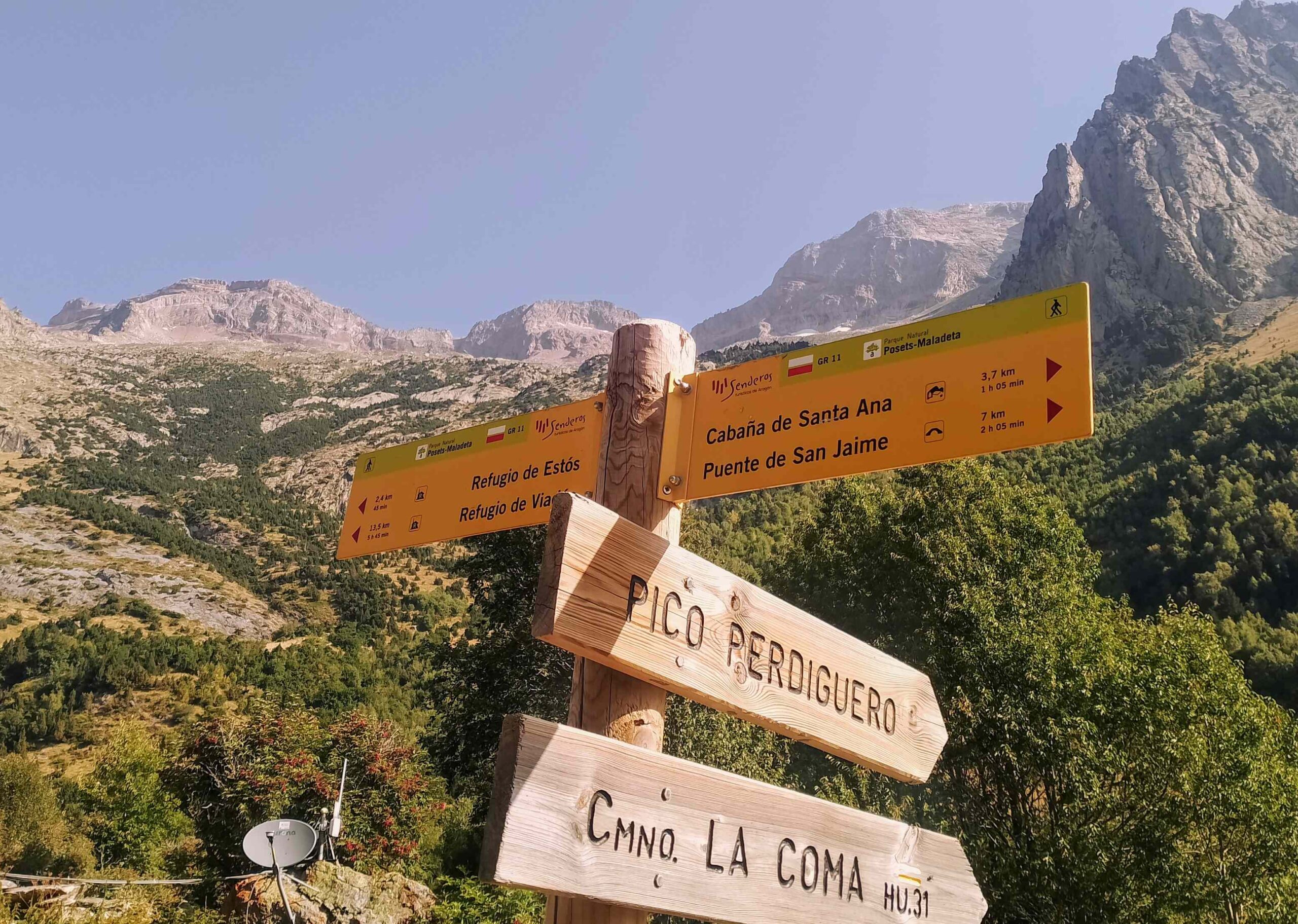 Signs say it’s six minutes to the Turmo cabin from the falls. Just before arriving, signs point for the ascent of Perdiguero mountain; at this point it’s 2.6km to get to the Estós refuge.