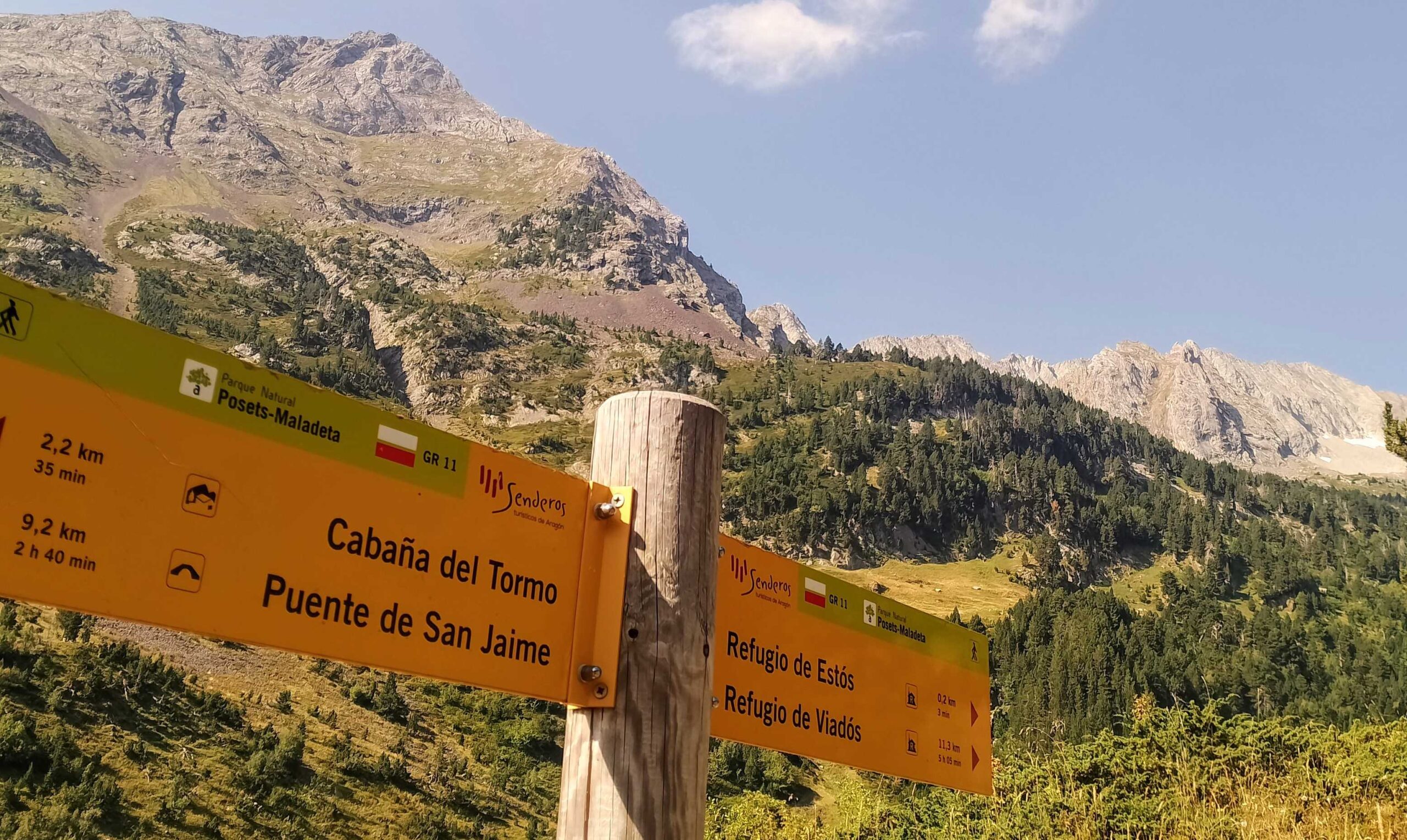 If walkers have taken public transport to Benasque then they will have to walk from the town, up the A-139 road, passing Camping Aneto, before locating the GR-11 signs soon afterwards. This puts around 4km on the route.