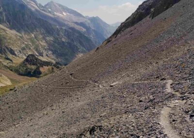 This route goes up the long Estós valley, following the river of the same name. It crosses over the Puerto de Chistau at 2,577 metres before descending to the Viadós mountain refuge.