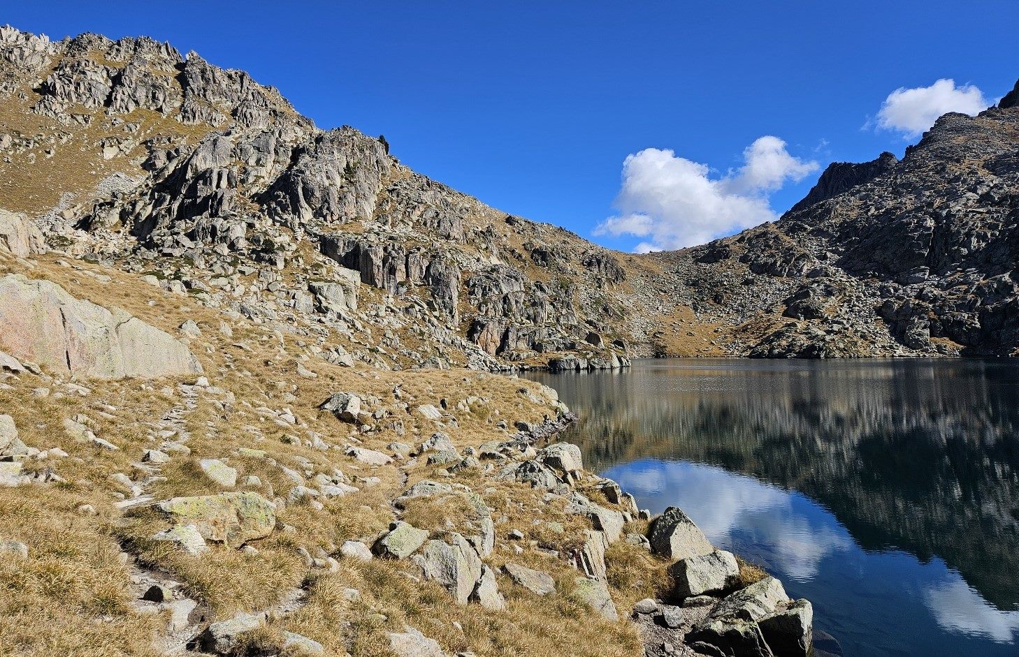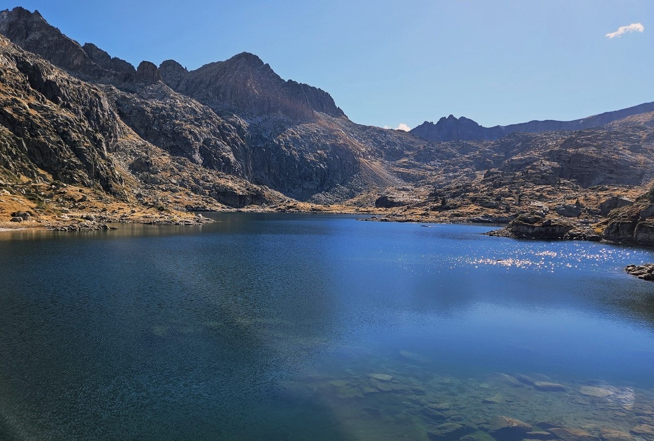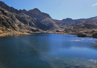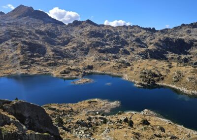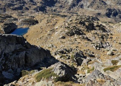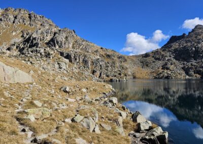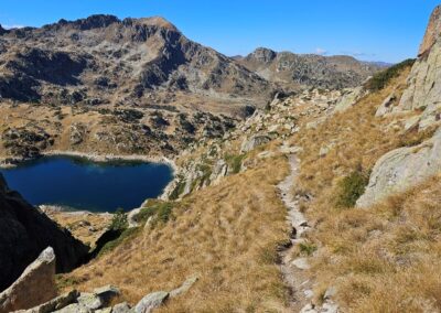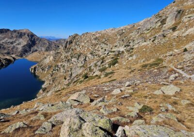 Then there is a steep descent to the far shore of the Estanh Gelat. Care has to be taken going down; there may be the odd patch of ice on this section.