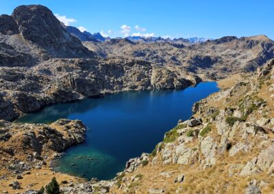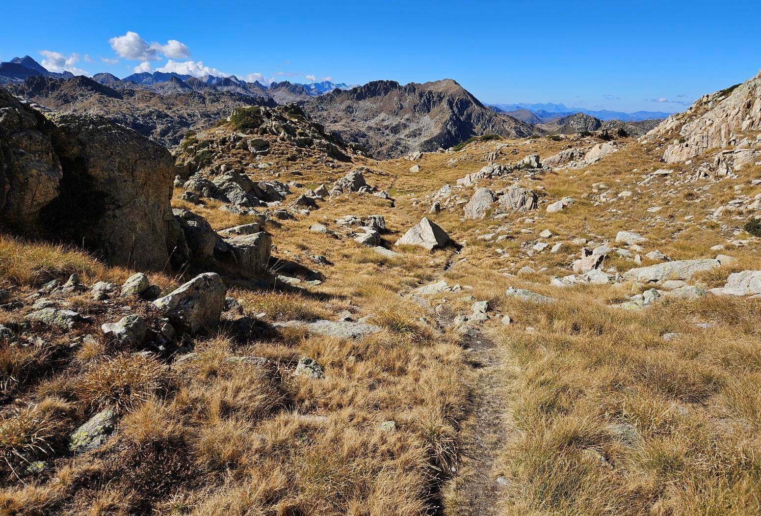 At the top of the rise, it’s worth a look back over the Estanh Mayor and the Estanh de Naut de Saboredo, which is behind it. These are the last of our glacial lakes on this route.