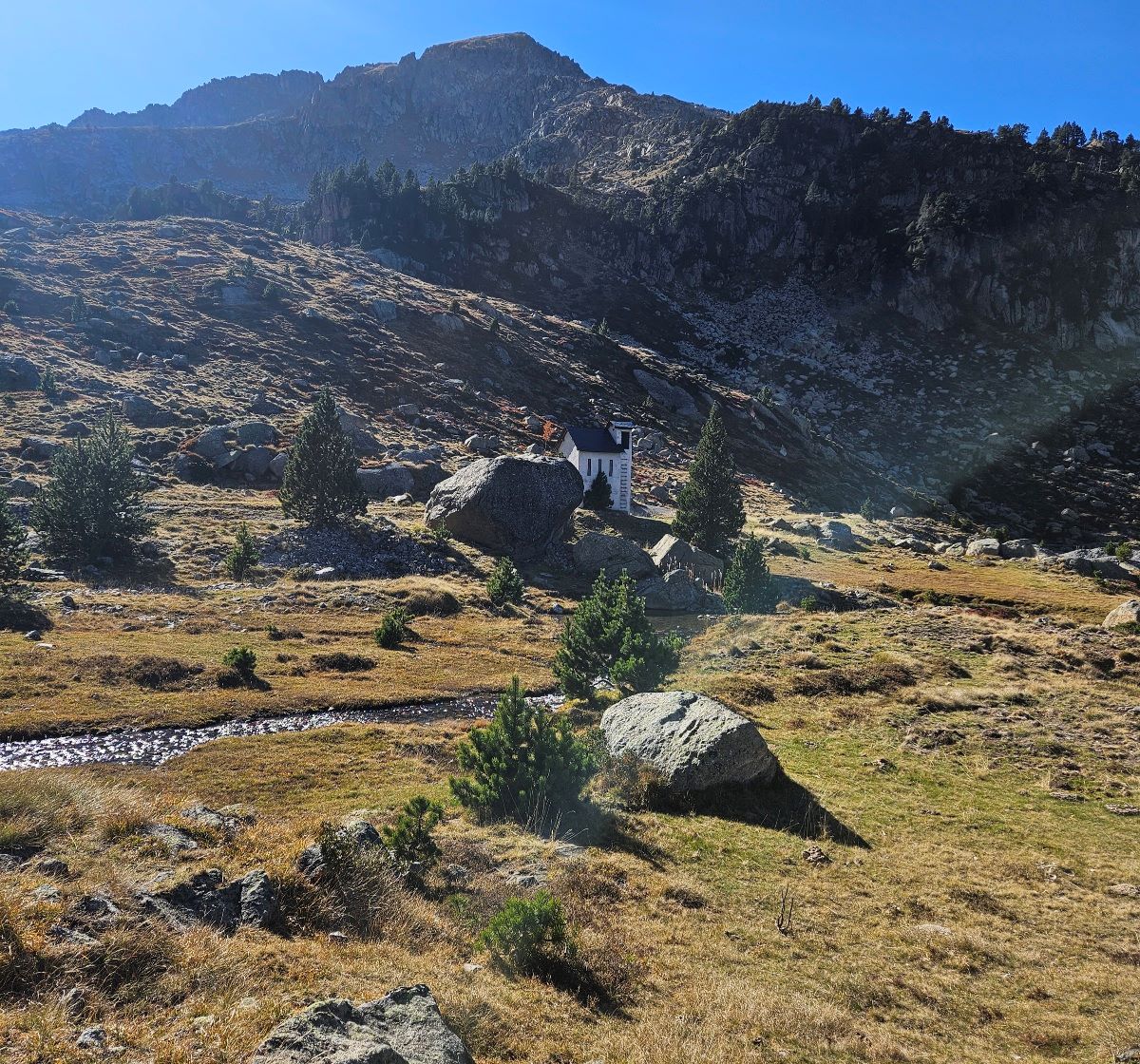 It’s a steady descent of the valley; the path turns into a wide track which follows the mountain stream.