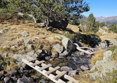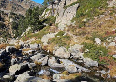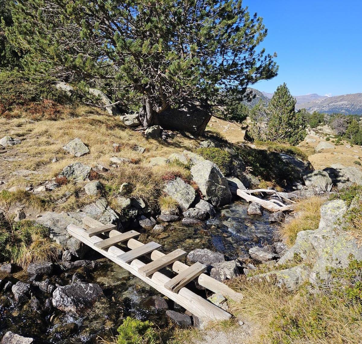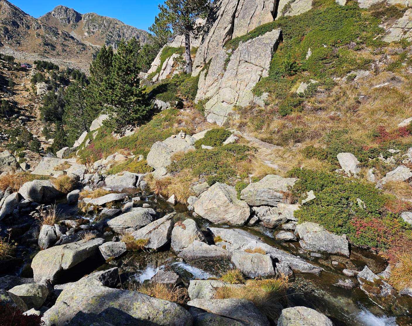 The path then goes down. It’s a rocky section, following a stream before crossing it. And then crossing it again, this time on a small footbridge.