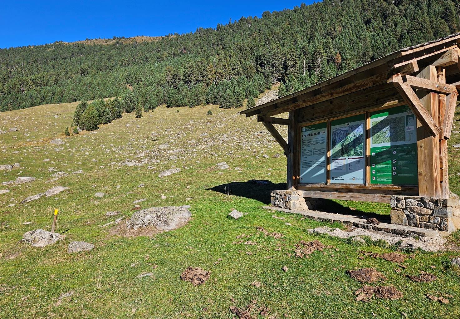 On the way down, see the large information board with maps and suggestions for the Val de Ruda. This is where we turn off right for the climb out of the valley.