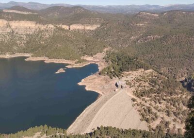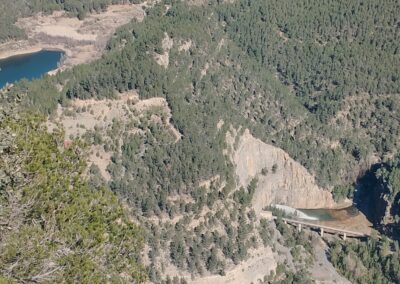 There is also a terrific view over the Arenoso reservoir and its dam, as well as the ‘aliviadero’, where water shoots out of a tunnel in the natural rock wall which now forms part of the dam, kick-starting the Mijares river once more.