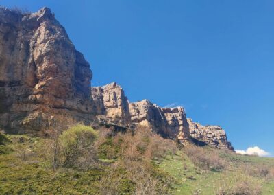 The walker is now heading into the spectacular Zoticos ravine, which is deep, verdant and picturesque. The rock formations of the limestone landscape are a wonder to behold. Follow the track downhill as it bends round to emerge at a point just above the Mas Alto farmstead. Now in the ravine, the path bears to the right to follow the right-hand side of the Zoticos. It is not dangerous walking and there is plenty of space to amble along and contemplate the surroundings.
