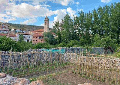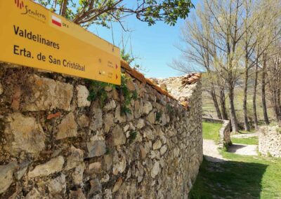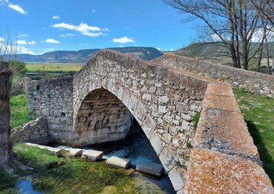 From the village square walk down to the road. Bear to the right and notice the large stone wall on the other side; here you will see a sign for the GR-8 pointing for Valdelinares. Head down the cobbled track to the lovely old bridge and cross it. Green alleyways are flanked by dry stone walls, providing a carpet of grass for the walker. There is a panel in Spanish with information about construction using the dry stone method.