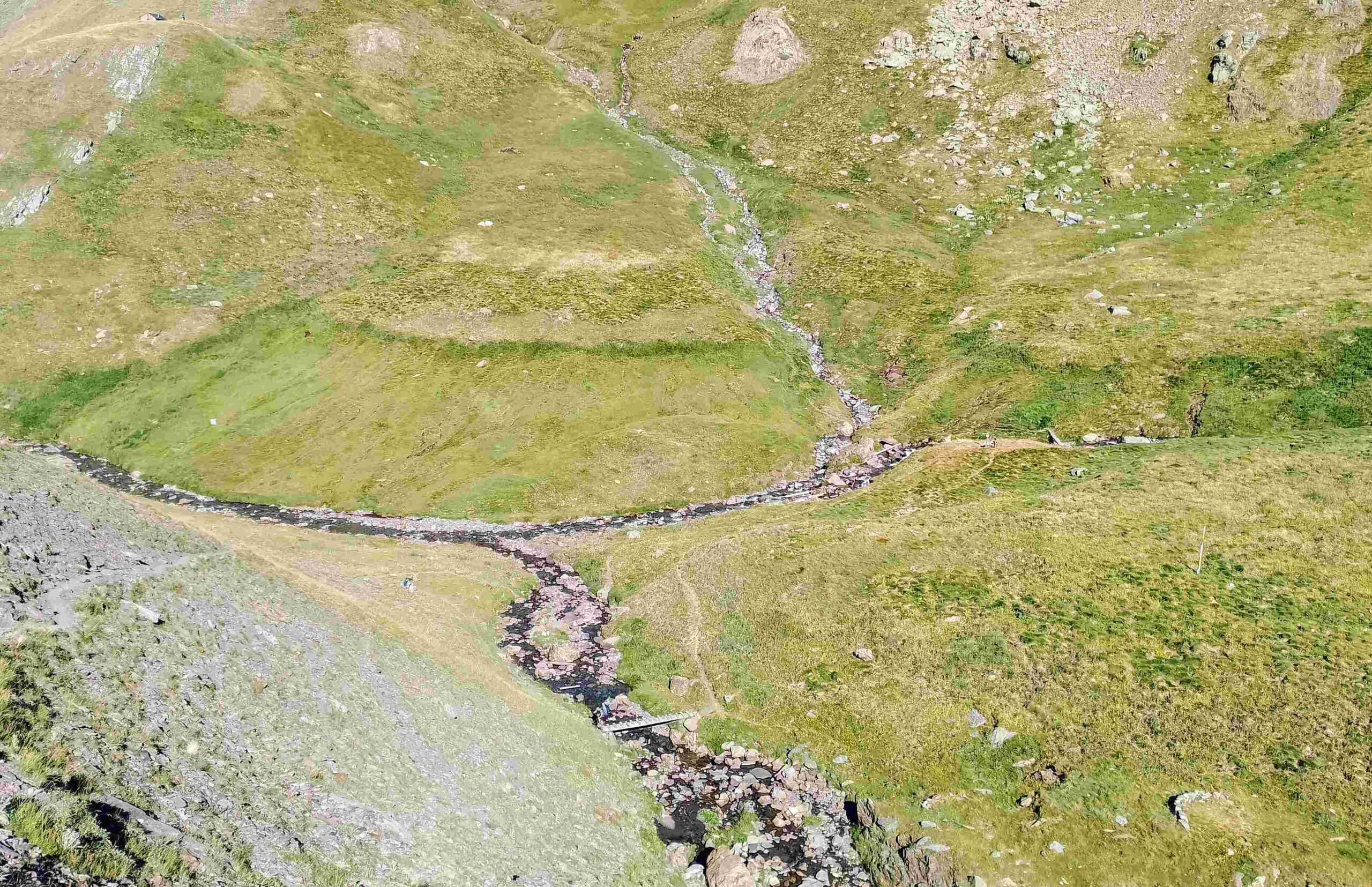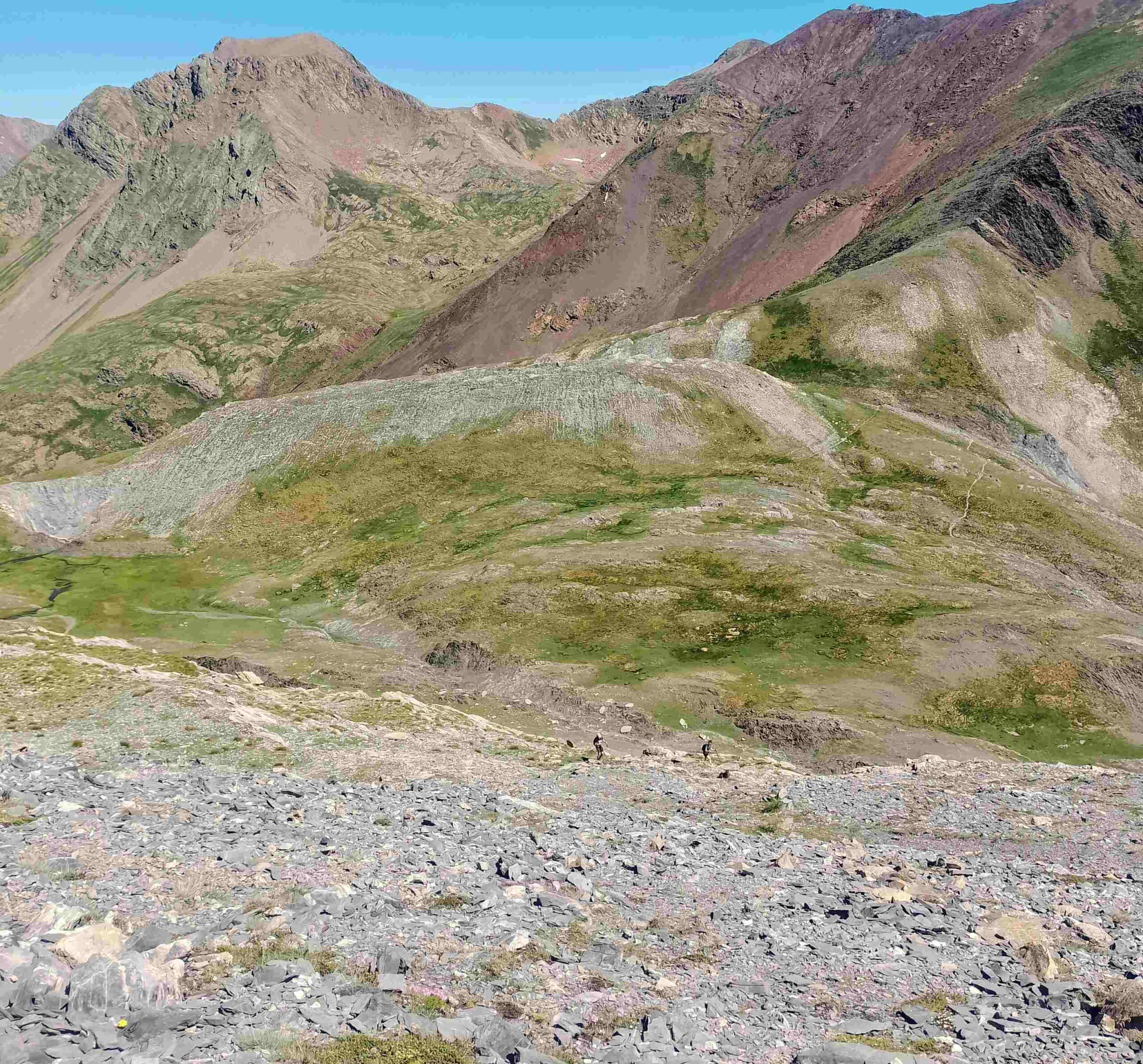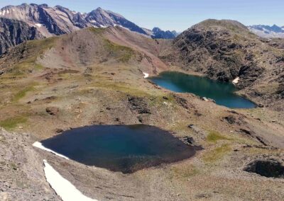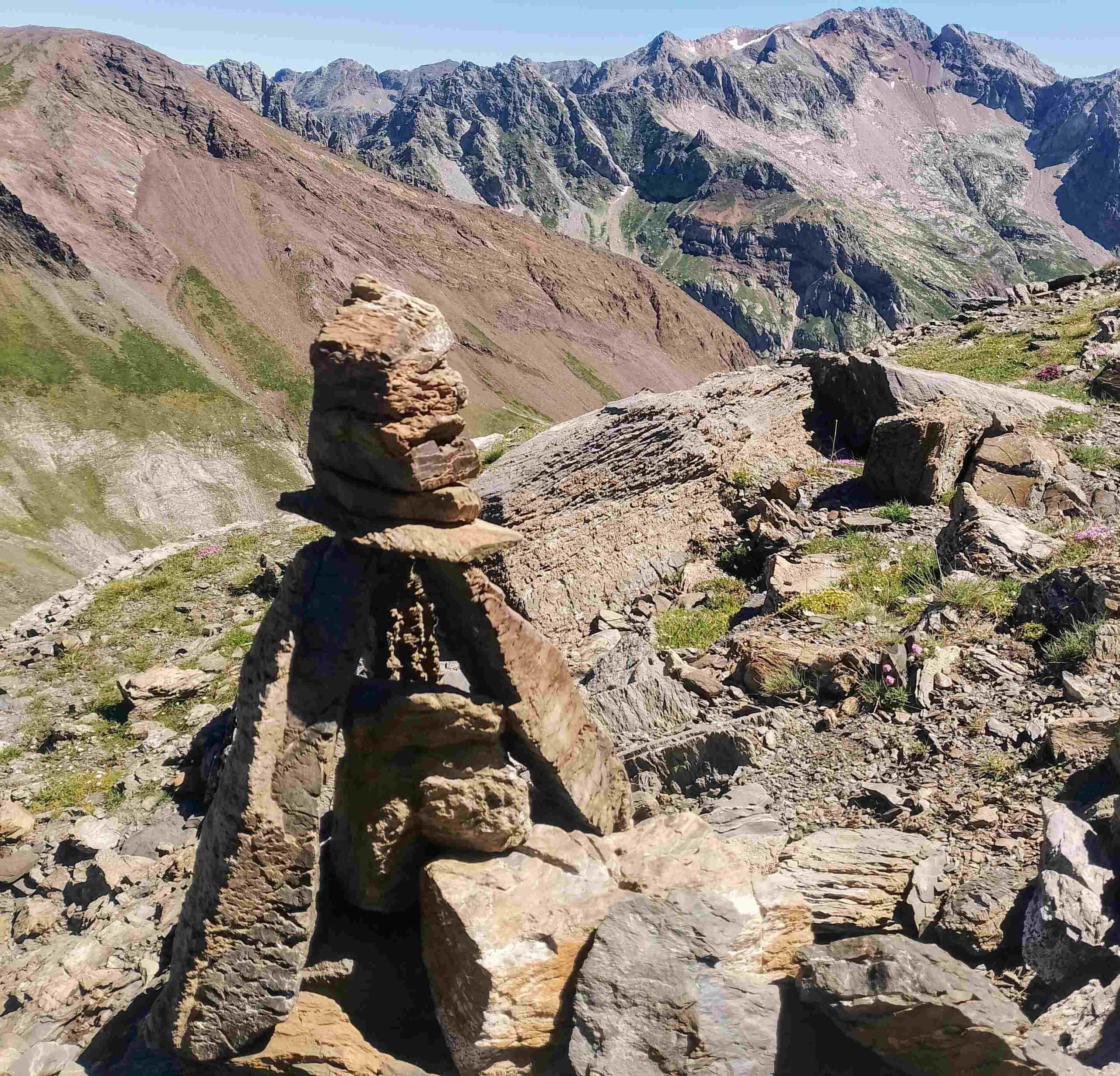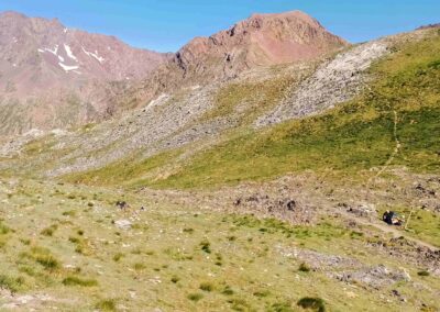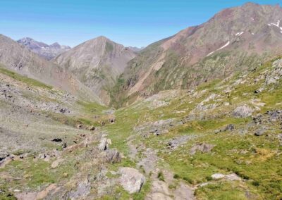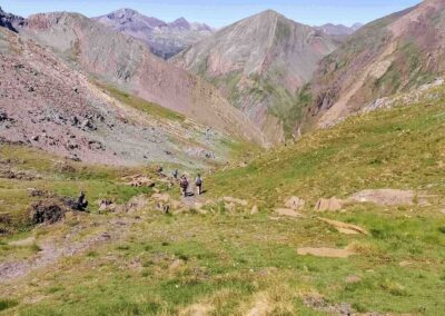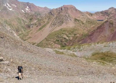 It is possible to walk down to the lakes and then skirt back round to the cairned path; or go back exactly the same way to the pass and return to Viadós on the GR-11.