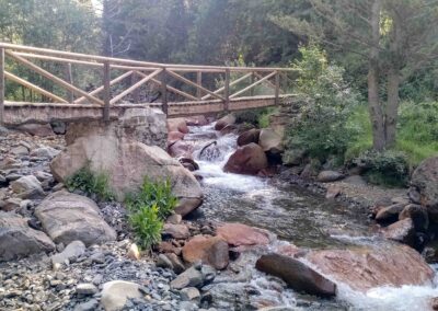 There’s a footbridge over the water; this is a great spot to cool off on the return leg. Care has to be taken in the fast-flowing stream but there are shallow spots to submerge and reap the benefits of the wonderful mountain water.