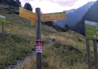 Continue on the GR-11 for 0.7km to a fork, where signposts reveal that our route for the lakes bears right, turning onto the GR-11.2 (see photos).
